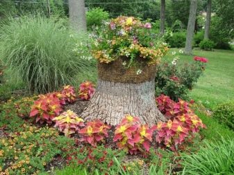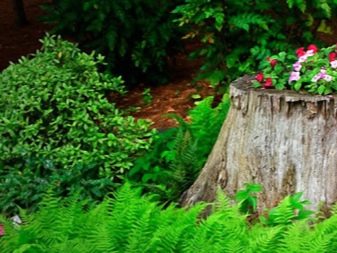 Често на парцелите се срещат стари дървета, които отдавна са престанали да дават плодове и се подготвят за рязане, а понякога пънове изпъкват изцяло, разваляйки външния вид на пейзажа, но те също не се изкореняват поради свързаните с това трудности, или поради сантиментални чувства и спомени. В този случай идеалният вариант би бил създаването на цветни лехи около пъна или дори директно вътре в него..