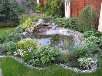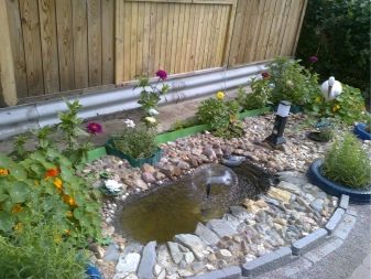 Но това е естетическата страна на въпроса. Ще бъде по -важно да се вземе предвид дълбочината на потапяне на бъдещото цветно легло, тъй като не може да се позволи на водата да наводни растения с коренова система близо до повърхността, това ги заплашва със смърт. Друго нещо са влаголюбивите растения.. По принцип дълбочината на потапяне може да се регулира с помощта на чакъл и малки камъчета..