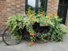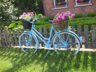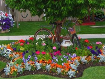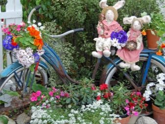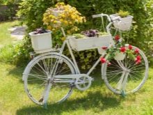 Оригинални цветни лехи могат да бъдат получени от стар велосипед, непропускливи гумени ботуши. Маргаритки или ярки невенчета и астри могат да бъдат засадени в разглобена вана..