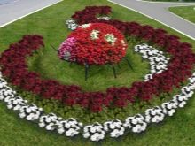 Друг пример за ландшафтен дизайн е килим с цветни лехи.. Такава цветна градина покрива земята с плътен флорален килим. Такава илюзия може да се създаде например с помощта на хризантеми. Когато се намери място за цветна градина, ще е необходимо да се засади храст от хризантема в центъра, а след това да се обгради с шест „венчелистчета“ – храсти от хризантема от същия цвят или, ако предвиденият модел го изисква, други цветове . След това, близо до кръстовището на двете “венчелистчета”, се засажда по протежение на храста; според този принцип цялото пространство на цветното легло е запълнено.