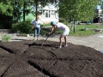 За да се направи цветно легло, извисяващо се над общия пейзаж, ще е необходимо да се добави почва. Най -често за това се използва рохкава и достатъчно плодородна почва (тя се донася от други сайтове или се купува в магазини със стоки за градината и зеленчуковата градина), от която впоследствие се образува необходимия релеф. Такава почва ще отнеме време за утаяване, в противен случай целият изкуствено създаден релеф ще бъде нарушен с течение на времето.. За да направите това, мястото или се оставя за известно време, изчаквайки почвата да се утаи сама под дъждовете, или просто се отделя добре.