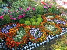 Много по -добре и по -красиво ще бъде това цветно легло, цветният модел, върху който беше внимателно обмислен предварително. Това ще ви позволи да избегнете „неуспехи“ по обикновения пъстър килим, когато някои от растенията вече са избледнели, а другото тепърва започва да цъфти, а една композиция във всеки случай ще изглежда много по -спретната и по -привлекателна.