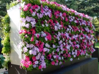 Като цяло петунията може да се счита за най -популярното растение за вертикални (и окачени) цветни лехи.. Той има доста разнообразна цветова палитра, освен това тези цветове могат да се комбинират; най -често в цветарството се предпочитат едногодишните сортове на това растение.