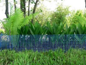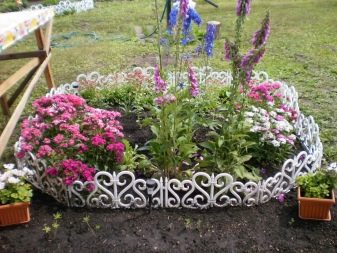 И накрая, евтини пластмасови огради – пластмасови мрежи – се предлагат в много градинарски магазини или магазини за подобряване на дома. Те са много леки, гъвкави, различават се по разнообразие от цветове, форми и шарки. но не инсталирайте пластмасова мрежа в райони с рохкава почва: бордюрът бързо ще премине под земята и ще загуби привлекателния си вид.
