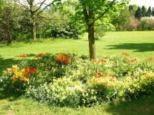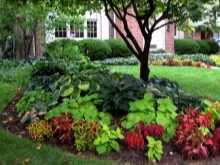 Ако в градината растат дървета, тогава няколко цветни лехи могат да бъдат поставени точно под тях: разбира се, на такава цветна леха трябва да се засадят любящи сянка растения.