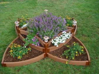 За да направите грижата за цветна градина най -удобна, можете да разбиете няколко малки клуба, свързани в една композиция с флорален модел или със собствена форма..