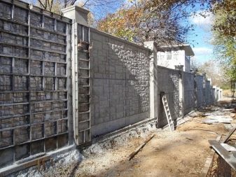 Монолитна ограда предполага задължителното наличие на фундамент или опори под формата на стълбове от стоманобетон, метал, тухли. Такава декоративна ограда се оказва доста висока, тя надеждно ще защити територията от любопитни очи..