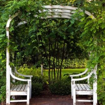 - За малки пространства е по -добре да се използва арки, с оригинални дизайни, например арка с портал. Популярна тенденция е технологията bersot, която се състои в образуването на полукълба от рамки или корони на дървета и се използва за украса на покрити алеи. Височината на тези уникални конструкции може да достигне няколко десетки метра. За берсот са подходящи породи, които се поддават на срязване и оформяне: липа, грозде, габър и глог.