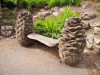 Ажурните дизайни с множество къдрици и шарки ще бъдат божи дар за пространства, декорирани с ретро елементи. Грубите пейки от естествен камък са подходящи за естествени градини, докато изкуствените пейзажи използват гладки или издълбани модели от груб гранит, бял мрамор и кварцит. Каменните пейки са оборудвани с топла дървена седалка.