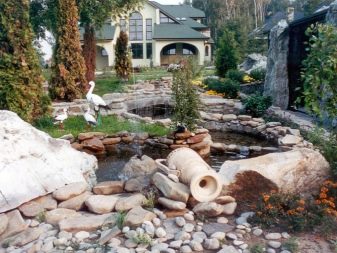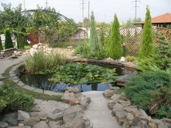 - Декоративен резервоар е достойна украса на обекта и може да бъде направена под формата на езерце, каскаден поток с язовири, басейн и чешма. Поставете го близо до къщата или зоната за отдих. При имитиране на естествени резервоари е необходимо да се постигне максимално сходство с естествената среда и органично да се впише водното тяло в естествения пейзаж. По бреговете трябва да се засаждат водолюбиви върби и тръстика, а в плитки води-лотоси и водни лилии. Когато оборудвате фонтани и басейни, човек трябва да се ръководи от наличието на водопроводи и стила на озеленената зона.