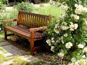 Инсталирането на пейка близо до изкуствено езерце или басейн също би било добро решение. Белите и черните пейки изглеждат добре, както и продуктите от небоядисана дървесина с ясен модел от дървесни влакна, лакирани. За селски стил, кръгла пейка от дървен материал е идеална. В стил Арт Нуво, чугунените конструкции, поставени на бял фон, ще изглеждат хармонично. Пейка от ковано желязо с минимален брой богато украсени елементи ще се впише добре в естествен стил.