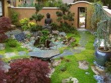 За сайтове на почитатели на английския стил, фигури на представители на фауната, гноми са подходящи. Ориенталският стил се характеризира с хармония и минимализъм. За декорация на такива зони се препоръчва да изберете естествени материали (например дърво, камък).