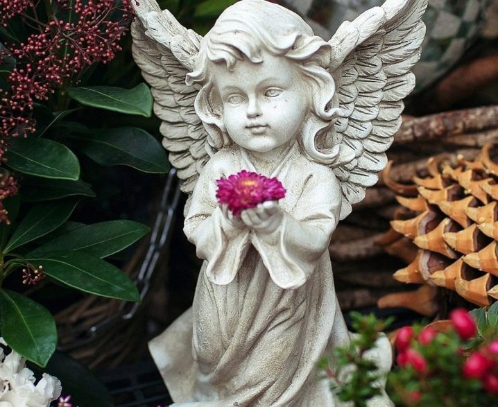 Формите на градинските фигурки са разнообразни и следват основната идея за дизайн. Те могат да бъдат класически, напомнящи малки фигурки, или геометрични или нестандартни. Всичко зависи от вкусовите предпочитания на собствениците на къщата. Например, ангел символизира благодат, мир. Такава фигурка ще допълни добре цветната арка. С нея ще се чувствате сякаш сте в Райската градина.