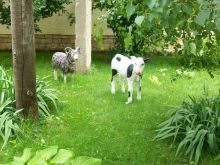 За крайградски район фигурките на животни са много подходящи (някои дори избират продукти в естествен размер). Популярни опции са куче, крава, магаре, кон. Много хора предпочитат диви животни и птици. Грациозен елен в градината ще ви накара да се почувствате като в приказна гора, красив лебед край езерото ще създаде поетично настроение. Интересна опция за дизайн е шарнирната глава на мечка или друго животно сред дърветата в градината или точно на входа на къщата..