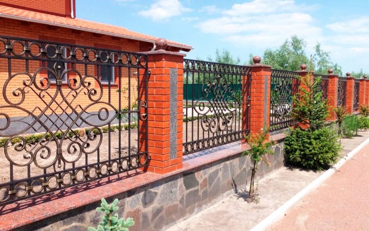 Ковани конструкции – Това е скъпа ограда, която в какви случаи не е много рентабилна. Но изглежда красиво и богато, особено в комбинация с тухлена зидария или метал. Оградата от ковано желязо не покрива района от любопитни очи. Не е необичайно да се види комбинация от ковани елементи с непрозрачни поликарбонатни листове..