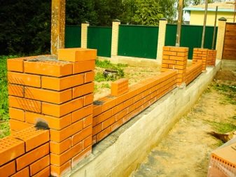 - На основата може да се постави цокъл с максимум три реда тухли. Това решение ще подобри външните характеристики на оградата. Не е необходимо да се прави цокъл, но ако стълбовете са тухлени, тогава цокълът ще изглежда хармонично и ще придаде на конструкцията завършеност.