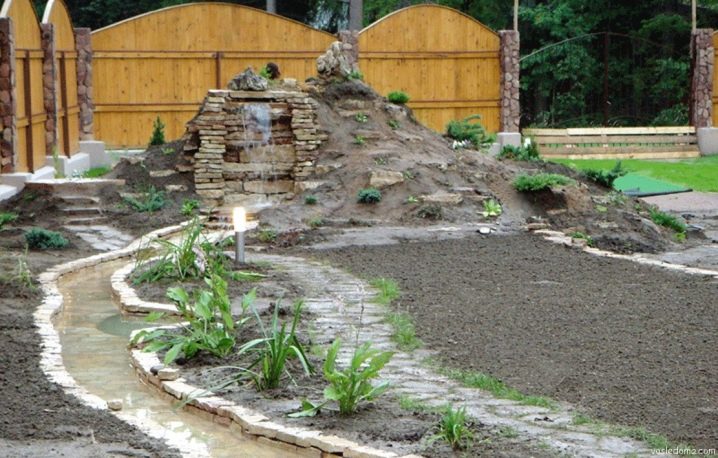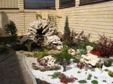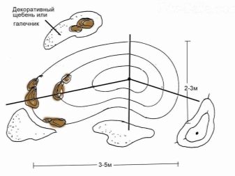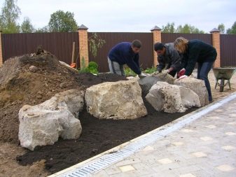 - Разположение на камъни. Устройство за езерце, ако е планирано.