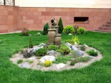 - Съставът трябва да се вижда от всеки ъгъл на сайта, така че би било правилно да го поставите на открито. Наличието на дървета в близост до алпинеума е нежелателно, тъй като, първо, през есента ще има проблеми с почистването на хълма от паднали листа, и второ, високо дърво в близост до хълма може да го потисне, изкривявайки реалните размери.