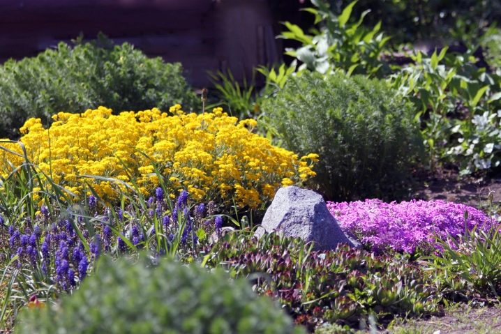 След като завършите оформлението на алпинеума, можете да помислите какво ще бъде неговото рамкиране – морава или няколко цветни лехи. По -добре е растенията в цветните лехи частично да са същите като на пързалката..
