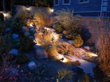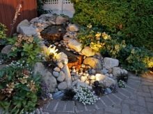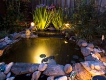 Можете да инсталирате осветление по периметъра на пързалката или на всяко ниво. Ако има езерце, водоустойчива лампа ще изглежда много хубаво в него..