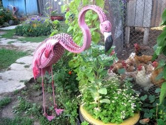 Ако собственикът има желание да украси допълнително слайда си, можете да прибегнете до ръчно изработената техника. Градински мъже от хартиено маше или кошници от хартиени тръби или може би оригинални саксии от пластмасови бутилки.