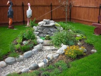 Когато не е достатъчно собственикът на градината да оборудва алпинеума, а иска да създаде уникален обект, можете да прибегнете до декор. Най -ефективният в този случай ще бъде резервоар. Има много вариации: фонтан, бликащ сред камъните на алпинеума, водопад, каскада или поток, падащ от върха, или езерце в подножието на хълм.