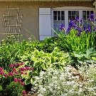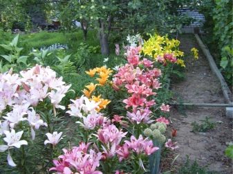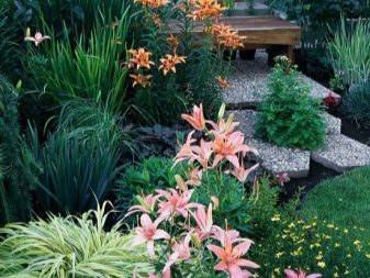 Лилии и флокси засадени с храсти, понякога комбинирани с многогодишни треви. Ребрените лилии се засаждат по пътеки или бордюри.