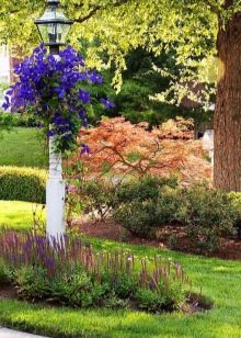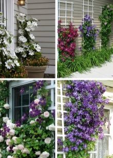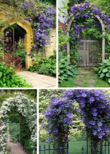 Клематис използвани за украса на огради или арки. Особеността на растенията са ярко лилави цветя и способността да се навиват около опората. Тези цветя ще съживят най -грозните порти. Поради ярко лилавия си оттенък, клематисът може да се използва за декориране на градина във френски стил.