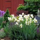 Ирисите се съчетават добре с ковани елементи, така че могат да бъдат поставени в близост до мостове. Растенията не изискват много поддръжка, така че е по -лесно да ги засадите с храсти..