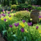 Водещите цветове са лилаво и жълто. Цветните акценти могат да бъдат добавени чрез засаждане на някои червени или бели цветя.. Основното е, че лилавите или жълтите тонове преобладават в растителността..