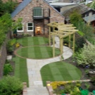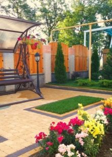 - Не запълвайте напълно пространството с тревна трева – сайтът ще изглежда скучен. Комбинирайте малки части от зеленина с живи цветя или храсти. Добавете изкуствени декоративни елементи.