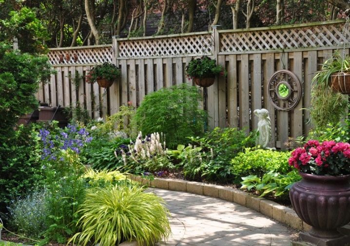 Специално внимание трябва да се обърне на декора на оградата. Много често невъзможността за промяна на дизайна на оградата внася дисонанс в общия изглед на градината.. За да се поддържа стилът, повърхността може да бъде декорирана.