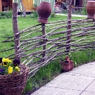 Плетените огради от мъртва дървесина или клони от иглолистни дървета се считат за отличителна черта на този стил. Езера, цветни лехи или функционални зони на обекта са украсени с ограда. Ако на вилата има малко езерце, тогава на брега може да се инсталира малка мелница.