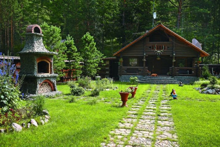 Пътеката в двора близо до селската къща може да бъде положена с плочи: по този начин пътеката няма да потъне в калта по време на обилни валежи.
