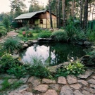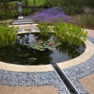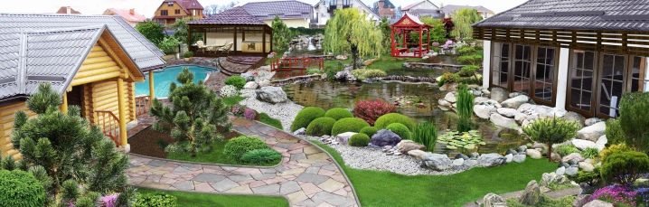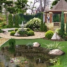 Зонирането на територията включва разпределяне на пространство за беседка. Архитектурният му вид ще допълни изграждането на езерце с фонтан. Любима техника на дизайнерите е да инсталират пейки и арки на отсрещния бряг на беседката.