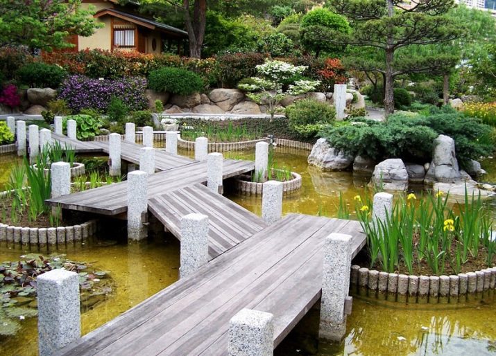 Друга отличителна черта на стила е използването на бамбукови клонки в декора на сайта. Можете да направите малка ограда от този материал или да го използвате за украса на фонтан. Можете сами да направите традиционна конструкция от бамбук и камък.