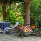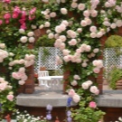 Картината е изпълнена с духа на Прованс и пренася жителите на къщата във Франция. Нежните рози се открояват на фона на тъмната зеленина на дърветата. Такъв контраст само подчертава изтънчения вкус на собствениците на двора..