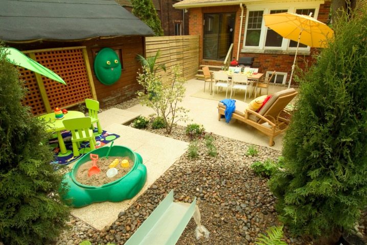 Ако семейството има деца, важно е да се осигури детска площадка. Зоната за игра трябва да бъде разположена отчасти на сянка, отчасти на слънце и без течения.