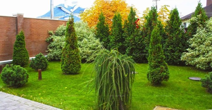Високите дървета не трябва да се засаждат на малка площ. Корените на такива растения се простират на голям радиус и значително ще намалят площта. Такова дърво ще изглежда хармонично само ако го поставите в центъра. Тази схема не изисква допълнителни акценти под формата на изкуствени декорации или цветни лехи. Това е отлично решение за тези, които планират да направят зона за отдих от своя сайт..