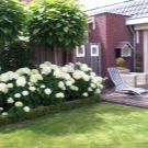 Отвън кръгът може да бъде украсен с насаждения от зелени храсти. Ако искате да подчертаете красотата на цветята, тогава трябва да се даде предпочитание на къси растения. Третият слой се състои от дървета, засадени в полукръг. Но ако размерът на обекта не е достатъчно голям, площта за засаждане на дървета трябва да бъде намалена. Броят на насажденията е правопропорционален на размера на градината.