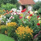 Лилейниците и георгините обичат да се използват в пейзажа. Времето на цъфтеж на тези растения е много дълго, което ги прави любими сред градинските цветя. Лилейниците оцеляват добре през зимата, така че са подходящи за северните райони. Това растение има обширен цветен спектър, който обикновено е разделен на светли и тъмни сортове. Цветя от лека палитра ще изглеждат благоприятно на фона на тъмна зеленина.