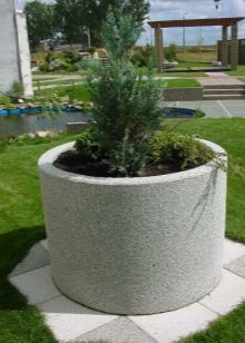 Бетонна саксия е декоративна ваза с малка архитектурна форма, която може да бъде направена от различни материали. Това е красива саксия за растения и цветя. Той помага на градинарите при отглеждането на особено чувствителни растения, позволява ви да изберете оптималния състав на почвата за всяко от тях. Носи саксия и декоративен товар: чрез нея можете да поставите ярки акценти в пейзажното пространство, подчертавайки уникалността на градината.