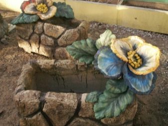 Всеки избира довършването самостоятелно: просто трябва да украсите повърхността с камъчета с различни форми, оставяйки доминиращото място на декора на живи цветя. Други започнаха работа, за да демонстрират дизайнерски умения, като декорират повърхности с резби, като индиански теми. В същото време растенията в този тандем изглеждат не по -малко стилни..