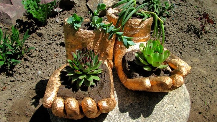 - необичайна саксия-обувка от стара обувка не се нуждае от допълнителен декор поради необичайната си форма и изобилието от малки детайли, тя е самодостатъчна и оригинална, чудесна за средно големи съцветия;