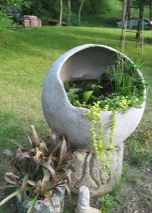 - притежавайки художествени умения, можете да направите ръчна саксия, като извайвате форма, базирана на кръгла рамка: украсена с цветя, тя ще изглежда докосващо и необичайно;