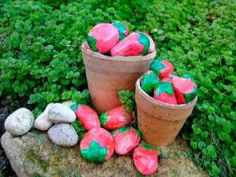 След това трябва да се поставят камъни върху всяка кула, като се използва циментова замазка като закрепващ материал. Прозорците на кулите трябва да бъдат изрязани от бутилките и циментирани. Покривите трябва да бъдат покрити със счупени керемиди. Ако “заградите” такъв замък със стена от камъни, направите арка за портата, получавате завършена композиция. Оцветяването на камъни е дейност, която дори децата могат да овладеят. Използвайки бои, устойчиви на влага, боядисвайте подходящи калдъръмени камъни, разстелете различни форми от тях върху цветни лехи или тревни площи.