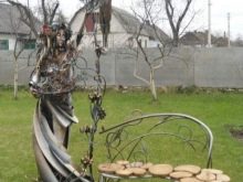 Кованите продукти могат да бъдат акцент в пейзажа, ако отговарят на цялостния дизайн. Можете самостоятелно да направите скулптура от тел и цимент, както и от други подръчни материали.