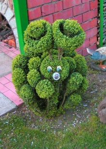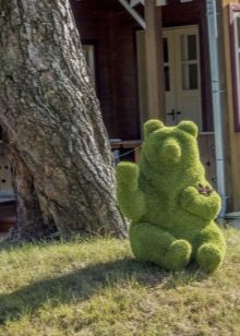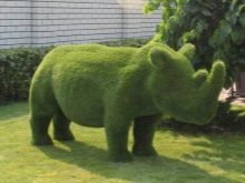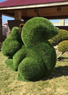 Декоративните фигури от храсти и дървета също изглеждат интересни, въпреки че изискват постоянна поддръжка. Алтернатива биха били скулптури от изкуствена трева, които могат да бъдат закупени и поставени на място. Те ще се впишат идеално в зеления ъгъл на вашия сайт, като същевременно не изискват специално внимание, като същевременно запазват оригиналния си елегантен вид за дълго време. Можете да поръчате или да направите своя собствена метална скулптура.