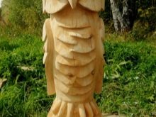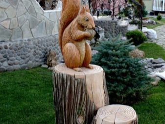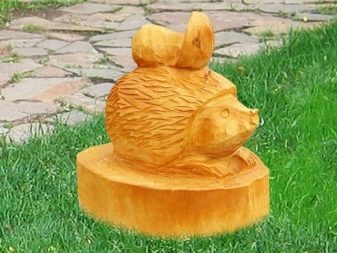 Често срещан материал за създаване на градински скулптури е дървото. Подходящ е за рисуване на големи и малки фигури. Често този материал се избира, за да изобрази герои от приказките (руски, чужди). За това се използват бор, трепетлика, дъб или бук. За да запазят тези произведения възможно най -дълго, те се импрегнират със защитни съединения и се лакират. Понякога се използват обикновени дървета, корени на дървета.