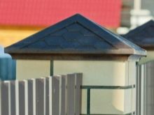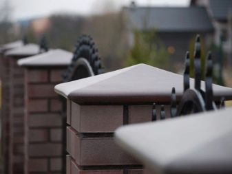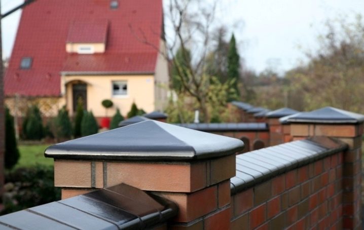 - Качулките предпазват тухлената зидария от вода, слънце и вятър, както и от механични натоварвания, предотвратявайки разрушаване. Металните тръби, които подсилват стълбовете отвътре, също се нуждаят от защита от корозия. Панелите на оградата също са затворени с тапи под формата на ленти..
